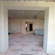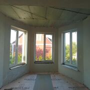 Во всём доме установлены стеклопакеты, централизованно доступны вода и газ, канализация местная (выгребная яма), проведено оптоволокно; все стены утеплены и оштукатурены, на полах (цоколь и первый этаж) выполнена стяжка.