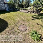 Дом расположен на участке площадью 13,76 сотки. Участок ухоженный, ровный, прямоугольной формы, огорожен по периметру забором (есть железные ворота для заезда автомобиля на территорию участка. Имеются насаждения: фруктовые деревья (яблони, абрикос), кустарники (смородина, малина), виноград, можжевельник и постройки: навес 4х6м, 3 сарая (один с погребом), уборная. Так же за домом закреплен участок 25 соток для садоводства, который находится за основным участком.