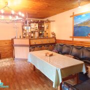 В бане установлен газовый котёл, к нему подключен источник бесперебойного питания. В здании бани есть прихожая, предбанник, парная, комната с бассейном и душевой кабиной, комната отдыха с баром и бильярдом. Дрова в печь закладываются с улицы.