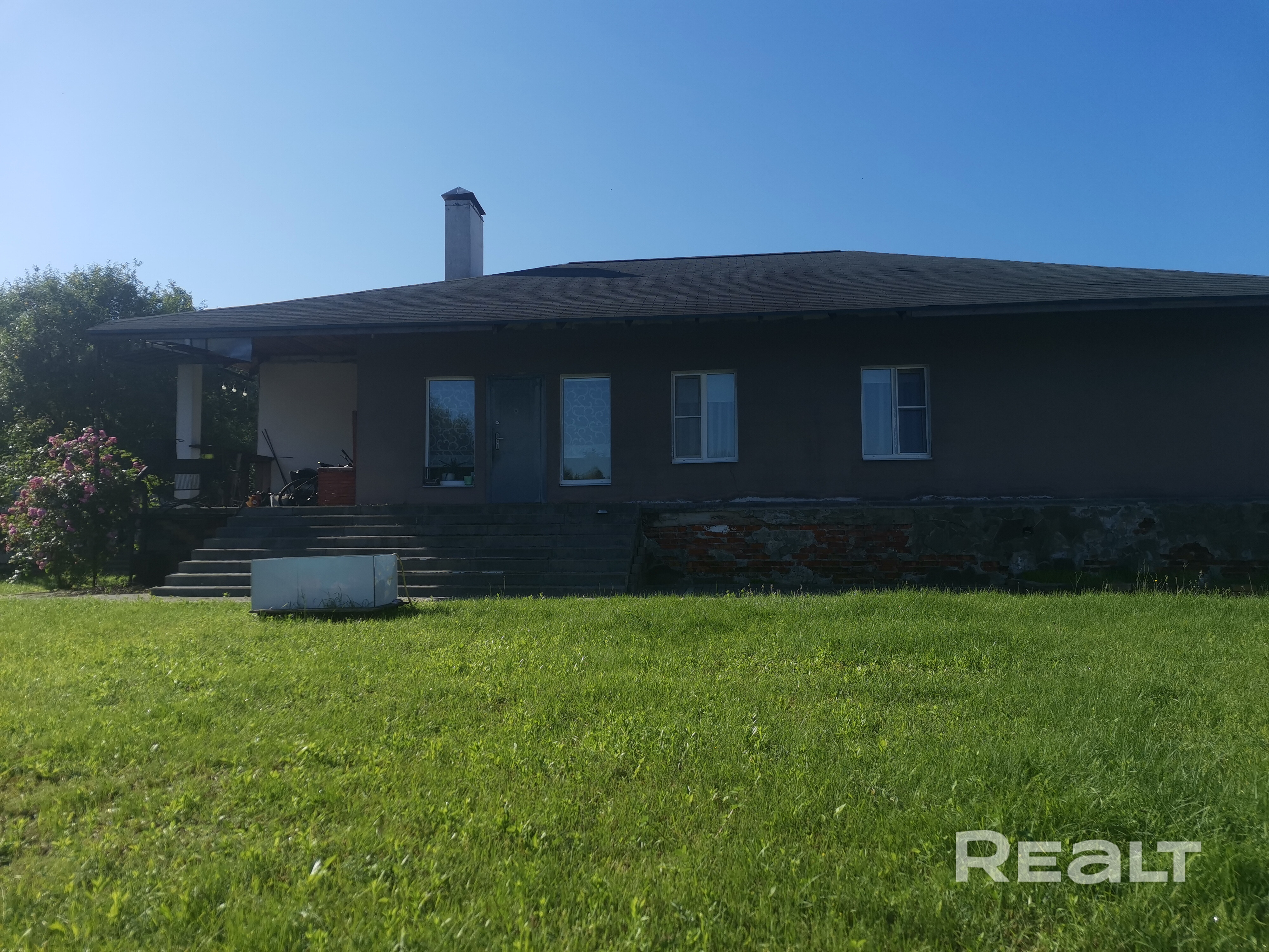Дом 1 эт.150+м²-продаётся. 4х скатная крыша, с большим выносом, от 60см до 120см. Мягкая кровля. Фундамент ленточный, сверху установлены блоки фбс, на них плиты, 11м на 18м. Потолок - балочное перекрытие.Около 80см свободное пространство под плитами, где разводка канализации. Стены 45 см, два блока по 20см, 5см пространство с пенопластом. Электричество и освещение развитое, с маршевыми выключателями.Дом теплый и( дышащий), достаточно экономный по коммуналке. Высокие потолки, 3 комнаты, 12;12;22