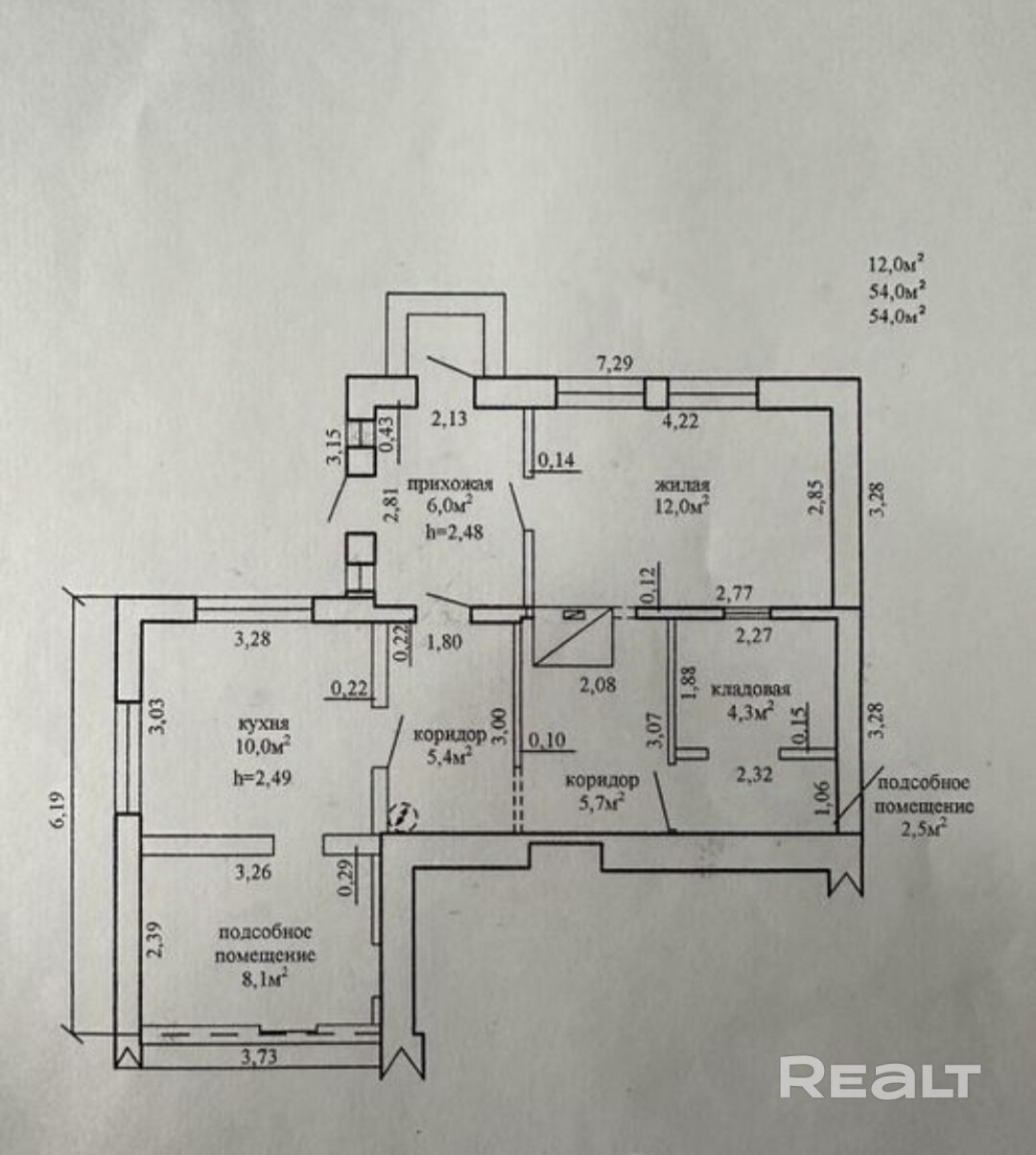 54 м²