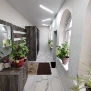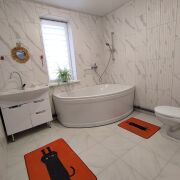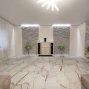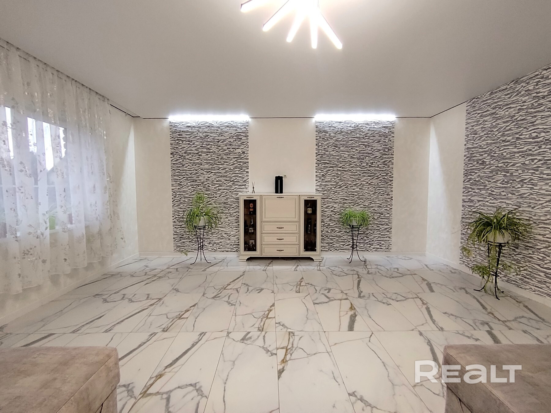 Дом оснащен надежным фундаментом из бутового камня и стенами из газосиликатного блока, облицованного декоративным камнем. На цокольном этаже расположен просторный гараж площадью 50 м2 с мастерской и котельной, а также дополнительные помещения для хранения или работы. Первый этаж восхищает своей планировкой: здесь находятся просторная кухня (22,1 м2), огромный холл (43,4 м2), ванная комната, коридор и прихожая. Теплые полы по всему этажу создают атмосферу уюта, а два входа позволяют удобно организовать пространство. На втором этаже расположены три спальни, два санузла и дополнительное помещение, которое можно использовать под тренажерный зал или игровую комнату. Утепленный мансардный этаж подходит для обустройства летней комнаты, что предоставляет вам массу возможностей для творчества и комфорта.