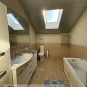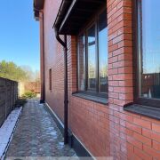 Перед домом и на участке положена плитка. Удобные подъездные пути. Вдоль забора высажены туи. Участок 7 соток. За домом есть огород и сарай. Из дома выведена система полива. Тип канализации – выгребная яма. Отопление центральное газовое. Вода централизованная круглогодичная и скважина. От скважины заведён вывод в погреб. Фундамент – бетонные блоки. Перекрытия – ж/б плиты. Крыша – гибкая черепица. Секционные ворота с электроприводом.
