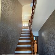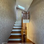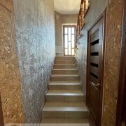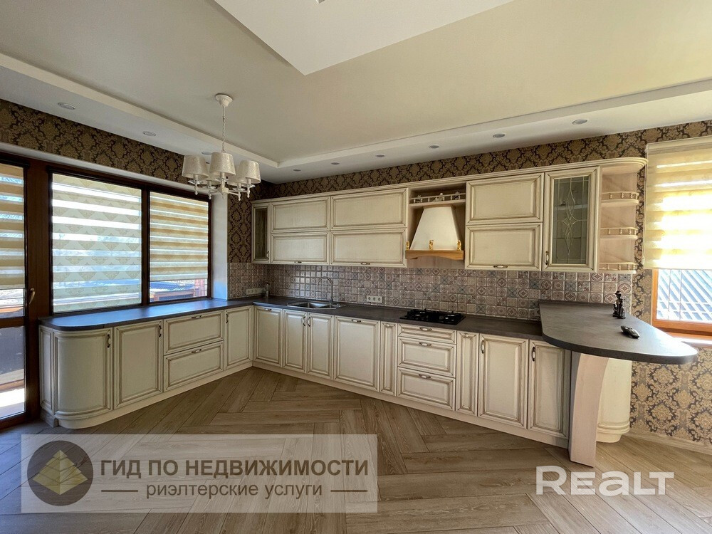 Дом строился для себя из качественных и дорогостоящих материалов. Сан.узлы расположены на первом и втором этажах. На первом этаже веранда, котельная (двухконтурный котел), небольшой сан.узел с душем, гараж, и погреб. На втором этаже большая гостиная с кухней и камином. Кухня изготовлена на заказ из массива дуба. Встроенная газовая варочная панель, вытяжка, духовой шкаф и микроволновка. Вся техника фирмы Bosh. Из кухни есть выход на балкон. По всему этажу положена паркетная плитка. На третьем этаже две комнаты (одна с балконом) и ванная комната с сан.узлом. Везде установлены батареи с регулировкой подачи тепла. Во всем доме установлены дорогостоящие окна и входные панорамные двери. Установлена система подогрева пола.