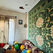- Строительство: деревянный дом с шифером и деревянными и пластиковыми окнами.