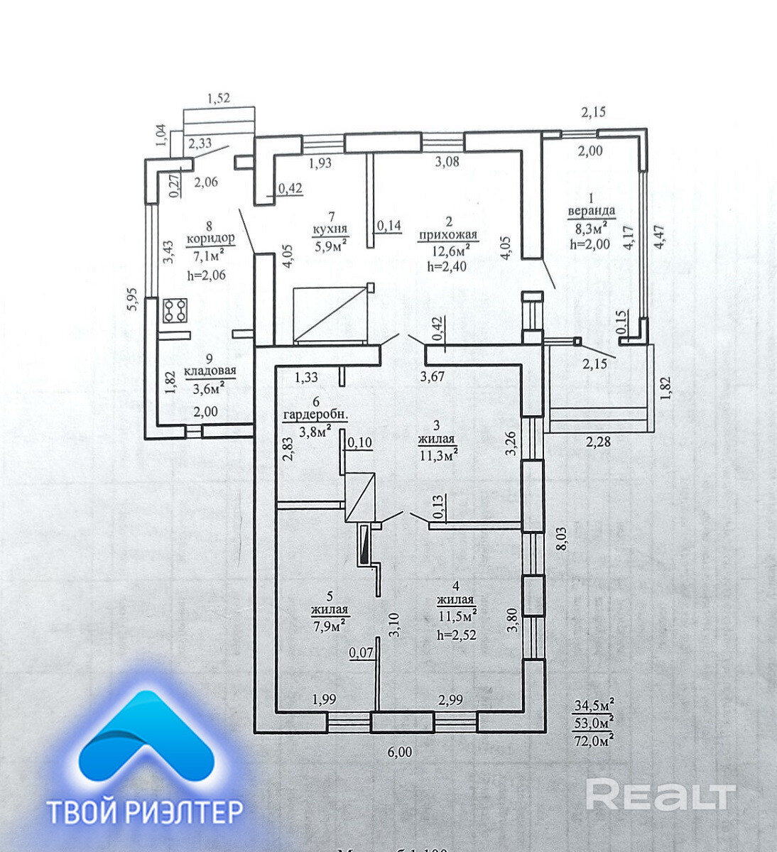 - стандартная планировка дома общей площадью 72 кв.м. с верандой;