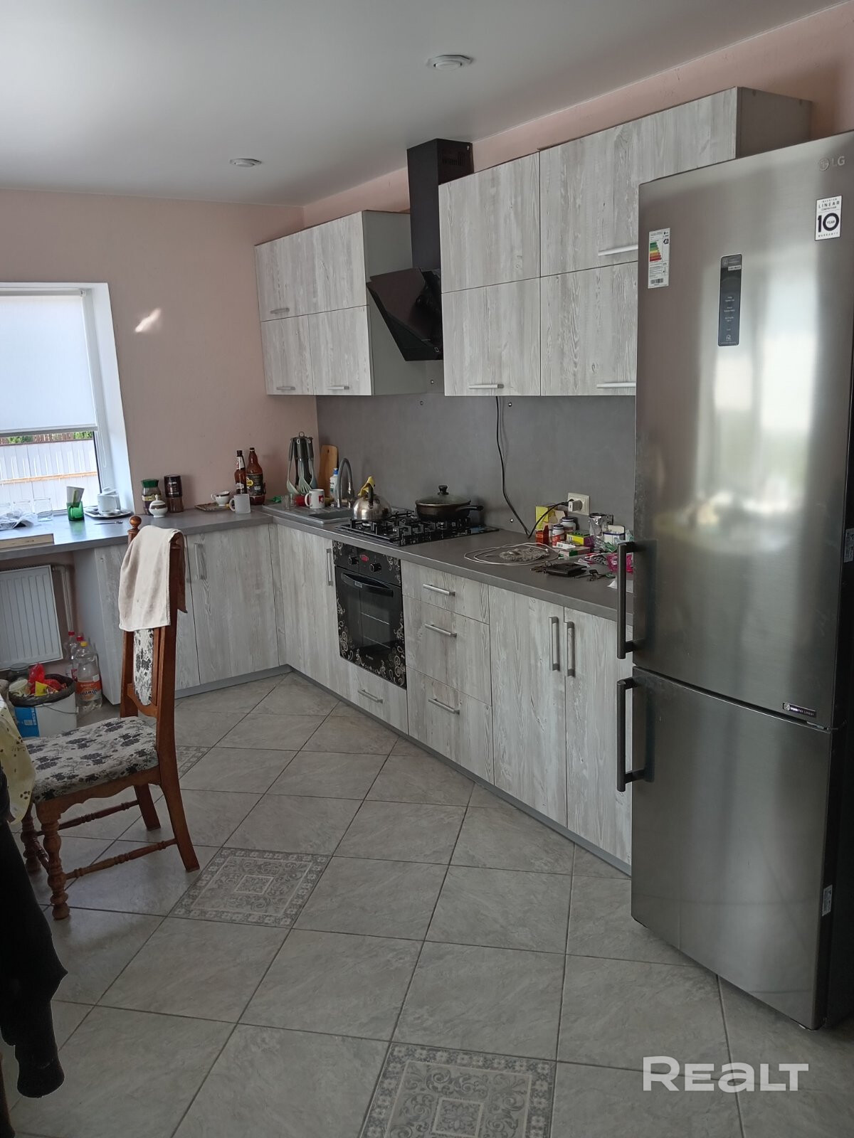 Дом 2018г. постройки. Фактически проживание с 2021г. Находится в 2км от г. Гомеля. Стены комбинированной кладки: кирпич-утеплитель-ПГС. Крыша итальянская металлочерепица с полимерным покрытием, газовый котёл Bosh двухконтурный на 24 кВт, металлические финские