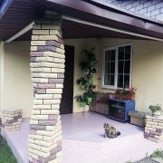 Дом с центральным отоплением, центральной канализацией и водой На полу ламинат 34 класса высокой прочности. Ванной и туалете плитка с теплым полом, на стенах керамогранит на потолке световые панели в гостинной парящий потолок с подсветкой от пульта Мебель кухонная-фасады Fenix рейлинг-Hettih столешница-Эггер Ванной столешница из влагостойкого пластика. Вся мебель и двери на гарантии Установлен боллер,кондиционер, фильтры гор/хол воды Залили пол под террасу 4×8,5 и выставили столбы Обмен на Минск