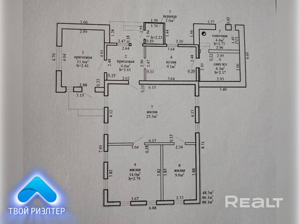 - общая площадь дома – 86,1 м.кв., жилая площадь – 48,3м.кв.