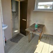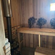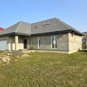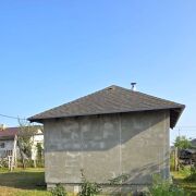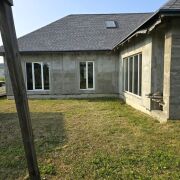 Дом практически готов к проживанию. Строили качественно для себя: высокий фундамент, двойная стена 0,5 метра (блоки в 2 ряда с воздушной прослойкой), окна ПВХ (французские окна выходят на терассу), крыша утеплена, кровля из мягкой черепицы, гараж на две машины, полностью готовая баня, собственная скважина. Дом уже оштукатурен изнутри и снаружи, сделан чёрный пол.