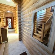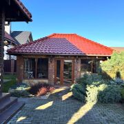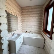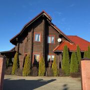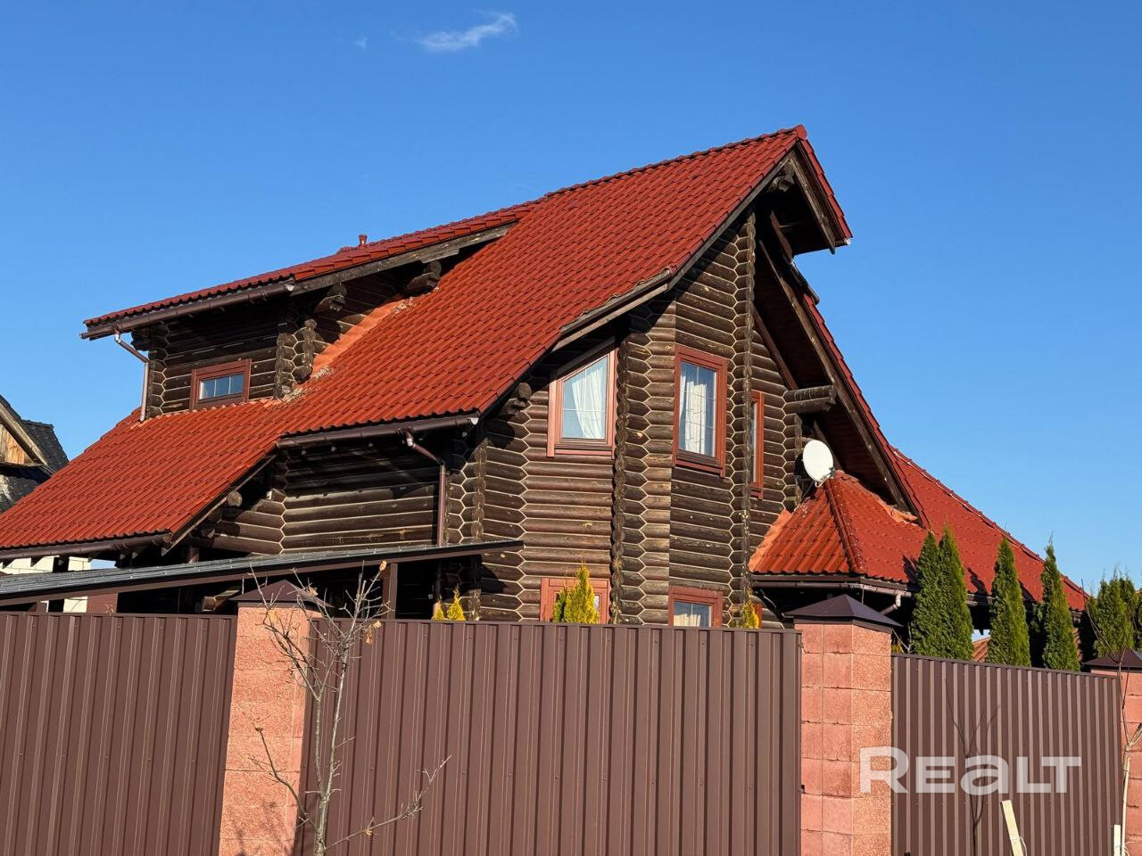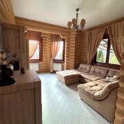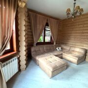 Дом построен качественно для себя. Материал - брус диаметром 24см, прошёл специальную обработку. Установлены деревянные стеклопакеты. Крыша из красной черепицы (пр-во Польши). Терраса более 20 кв.м с выходом из кухни. Зелёный газон с автополивом. Участок ровный и ухоженный, огорожен полностью забором. Удобный подъезд с улицы.