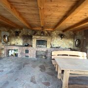 Вас точно порадует отдельно стоящий капитальный домик для душевных посиделок с печкой, мангальной зоной, горячей и холодной водой.