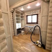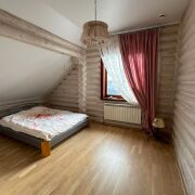 На втором этаже расположены три комнаты и гардеробная, а также санузел. На чердаке стоит кондиционер, который охлаждает все комнаты.