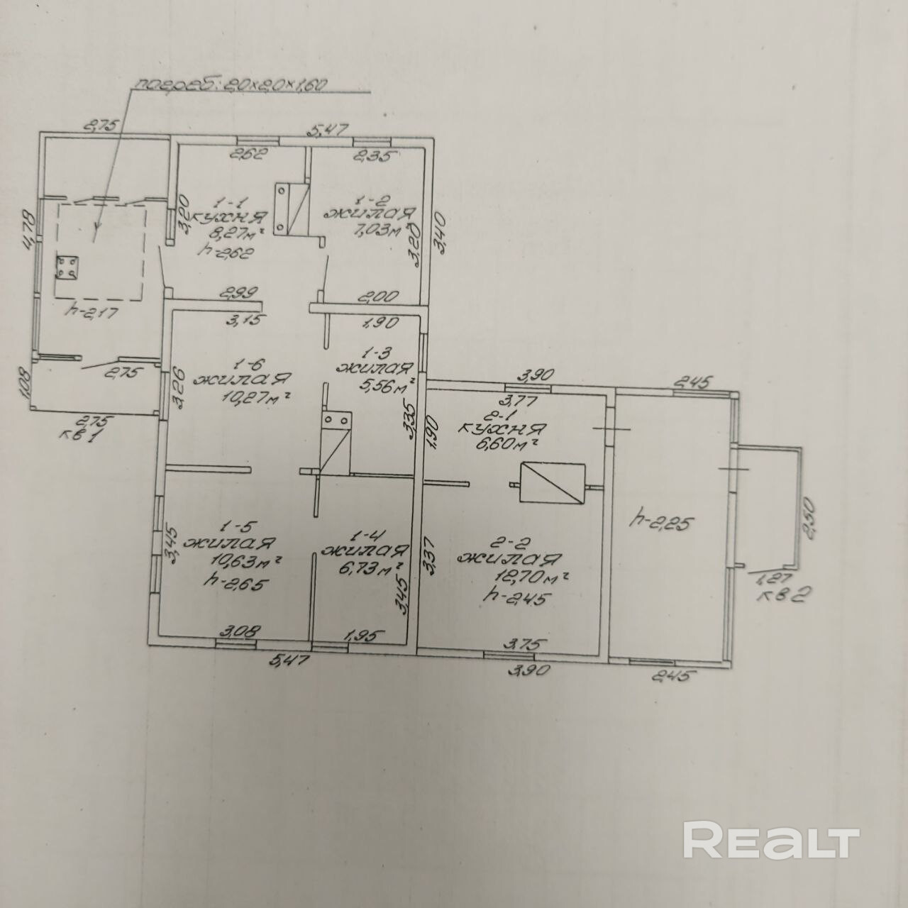 Земельный участок размером 7 соток. 6 жилых комнат. Окна деревянные. Есть гараж со смотровой ямой.