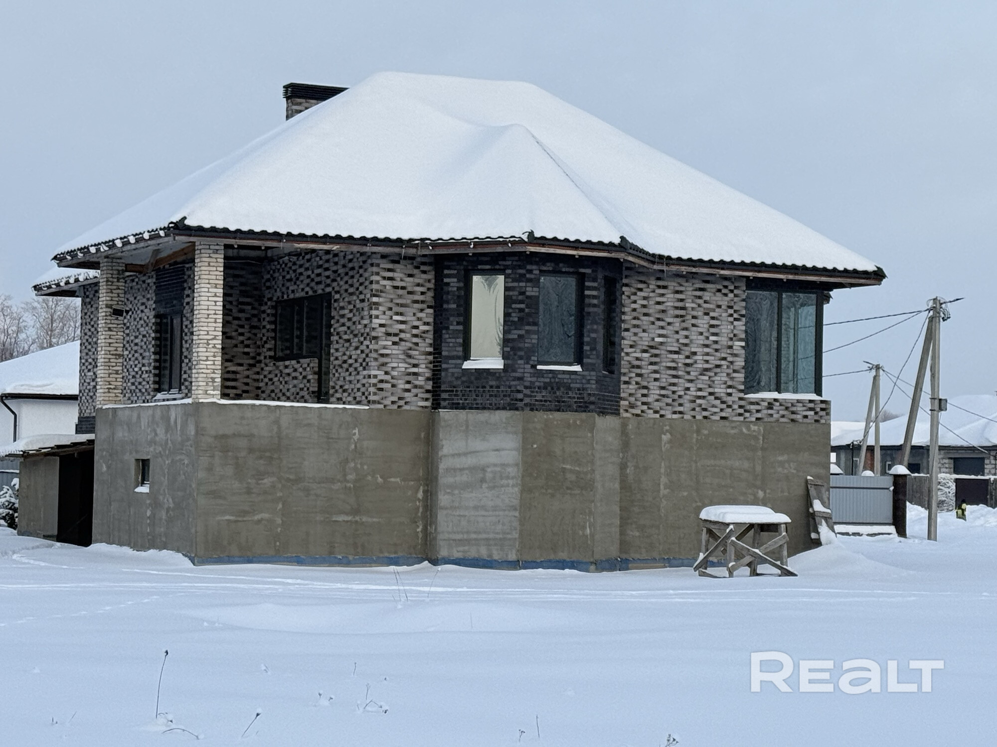 Продается дом без внутренней отделки, что позволяет воплотить свои индивидуальные предпочтения по дизайну. Общая площадь застройки 253м.кв, расположен в два этажа (цокольный и первый).