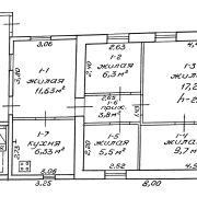 Его общая площадь – 65.4 м.кв. (5 жилых комнат).