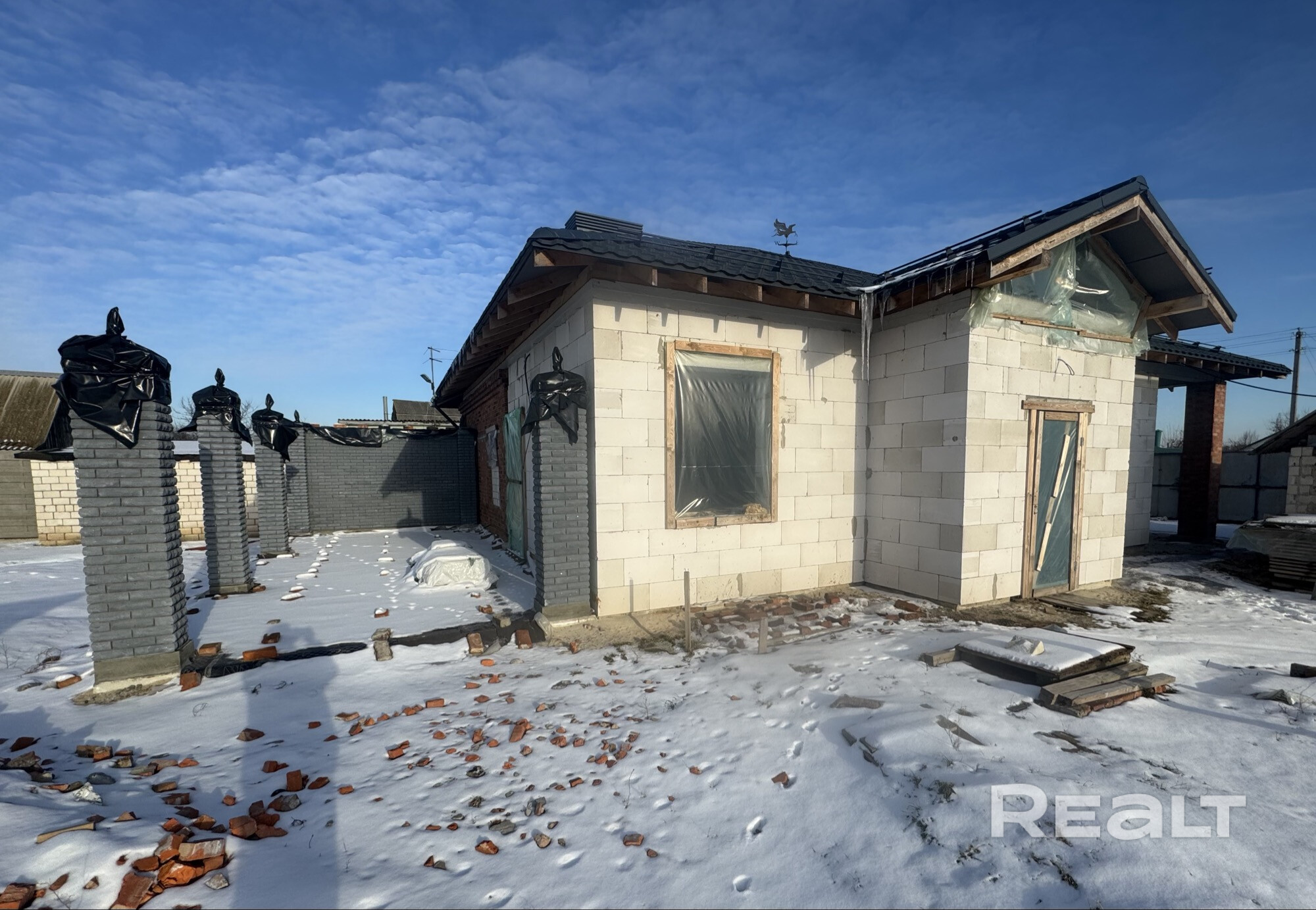 Участок в 30 соток обнесен бетонным забором на ленточном фундаменте. В дом введена центральная канализация. Участок выровнен плодородным грунтом. Дом имеет две террасы 20 м.кВ и 40 м.кВ. Полностью готов к отделочным работам. Сделана электрика.