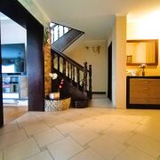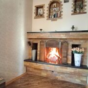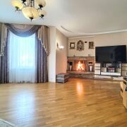 На первом этаже через просторный холл мы попадаем в уютную гостиную с камином, который будет согревать вашу семью зимними вечерами.
