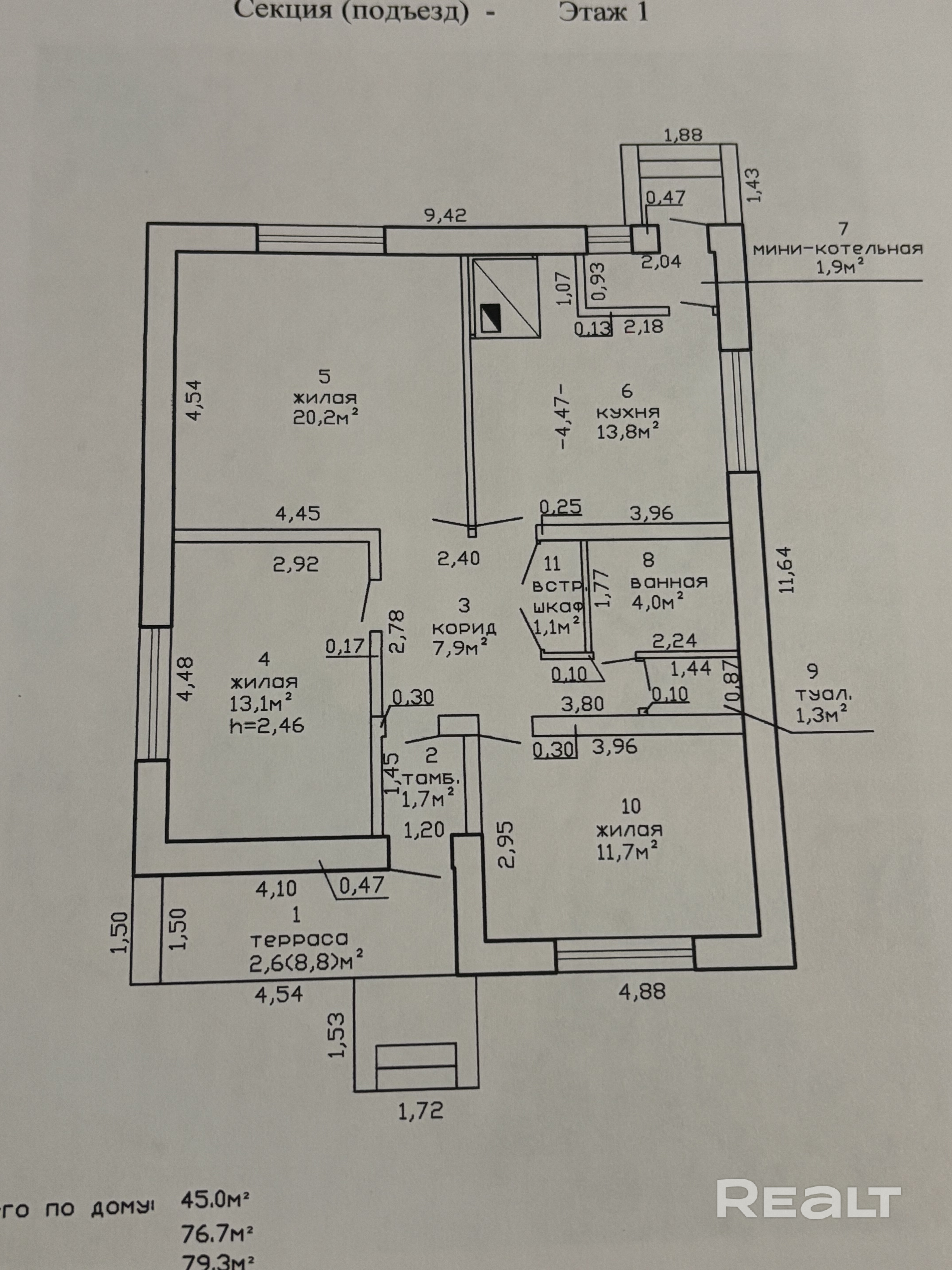 - Площадь общая