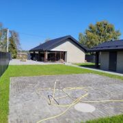 Сделано благоустройство двора, есть навес на два авто.