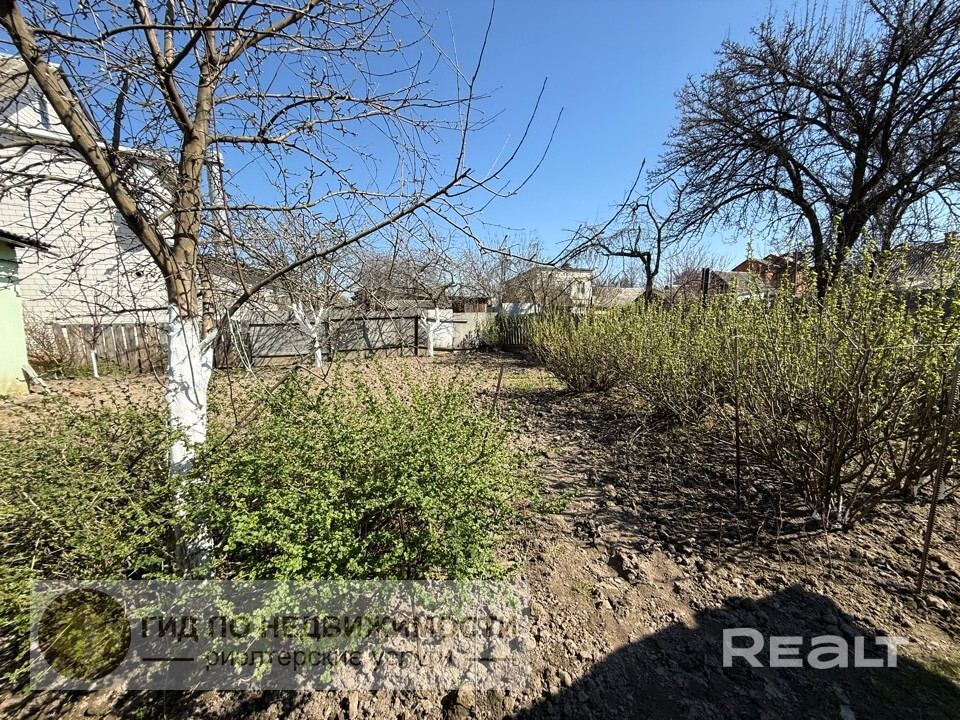 Участок 4 сотки с пристройками (3 сарая с погребом). Ухоженный, ровный, прямоугольной формы, огорожен по периметру забором. На нем высажены плодовые деревья и кустарники: персик, различные сорта яблони, слива Мирабель, 6 кустов смородины и крыжовника. Удобный подъезд к дому, есть возможность сделать ворота и гараж.