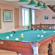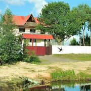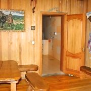Второй и третий этаж это жилые комнаты ( всего их пять) . Возможно размещение до 25 гостей. На каждом этаже есть душ и санузел. В номере – люкс отдельные санузел и душ. На втором этаже можно провести время за игрой в бильярд, на третьем уровне - отдохнуть на открытой террасе с которой открывается замечательный вид на пруд и озеро.