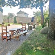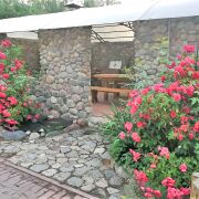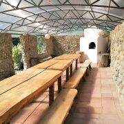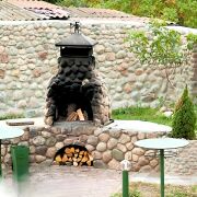 На территории усадьбы расположена каменная беседка с русской печью в которой свободно сможет разместиться большая компания ( до 40 человек). Из беседки захватывающий вид на искусственный водопад. Благоустроенная зона барбекю, места для отдыха под открытым небом.