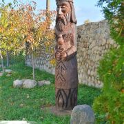 Дорожки выложены тротуарной плиткой вдоль которых установлены деревянные декоративные фигуры ручной работы. Вся территория усадьбы хорошо освещена в тёмное время суток.