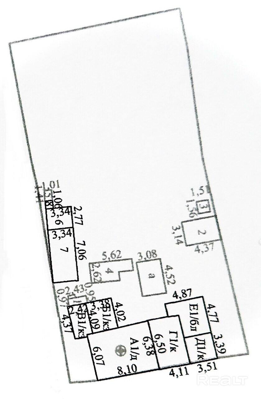 Во дворе на ухоженном правильной формы участке размером 4,1 сотки с плодовыми насаждениями имеются сараи, дровница, баня, уборная.