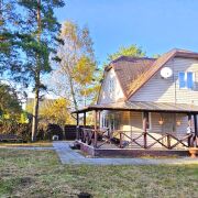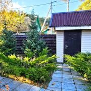 Участок ухожен, засажен газонной травой. Туи и вековые сосны придают даче свой шарм. Рядом живописные берега реки Сож.
