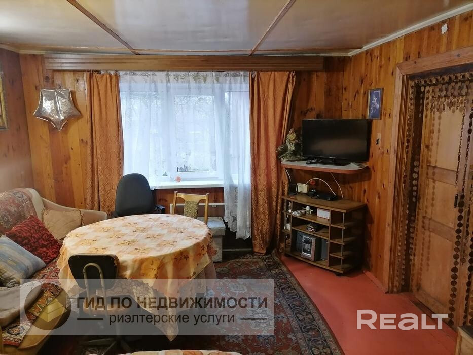 Дом в аккуратном и жилом состоянии, состоит из одного этажа и мансарды. Стены - газосиликатный блок, оштукатурены, мансардный этаж - дерево. На первом этаже 2 комнаты, и на мансарде - 2 спальни. Отопление – печное. Окна ПВХ и деревянные. На участке имеется гараж, летний душ, сарай, погреб. Водоснабжение - скважина.