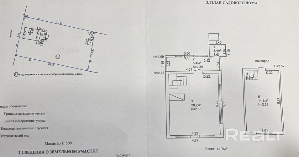 - Площадь участка