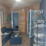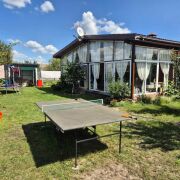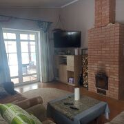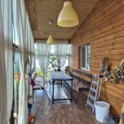 Основной дом в один уровень с большой застекленной террасой, высота потолков 2.5-3.6 метра. Стены ПГС 400 мм+ утеплитель 100 мм, фактурная штукатурка с покраской ,цоколь утеплен пенофлексом, окна ПВХ , ломанная крыша из металлочерепицы с утеплителем , полы плитка и ламинат. Общая площадь дома 130 кв.м. Включает в себя веранду, прихожую, котельную, кухню-гостиную с печью- камином, две спальни, большую ванную комнату с санузлом и застекленную террасу. По всему дому теплый пол, электрокотел ,380V, отдельная скважина с станцией обезжелезивания.