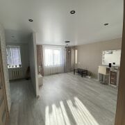 Нестандартная планировка! Большая просторная гостиная! Новая проводка, полы залиты бетоном. Немецкие обои и ламинат. На кухне плитка. Вся мебель и сантехника новые. В кухне вытяжка, вар.панель и духовой шкаф. Потолки натяжные (французское полотно). Балкон обшит натуральным деревом. Стены прихожей и кухни-декоративная штукатурка (кирпичи). Рядом магазины, школа, детский сад. В пеших трех минутах поликлиника. Причина продажи-переезд. Все вопросы по тел.