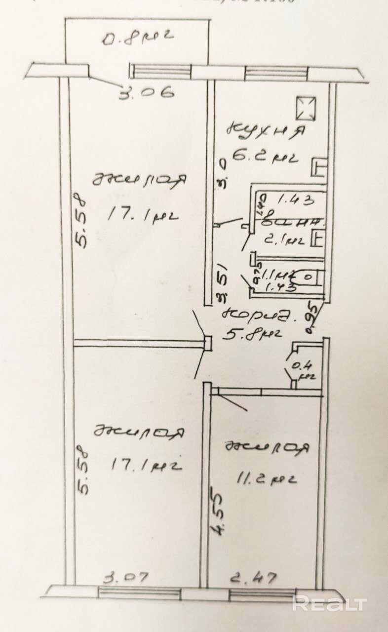 Квартира расположена на 4-м этаже 5-ти этажного панельного дома 1972 г.п. Общая площадь квартиры по СНБ 61,6 кв.м. Жилая площадь 45,4 кв.м. Кухня 6,2 кв.м. Квартира состоит из большого зала с выходом на балкон, двух спален, просторного коридора, небольшой кухни, на которой всё и всегда будет под рукой, и раздельного санузла. Планировка квартиры соответствует техническому паспорту.