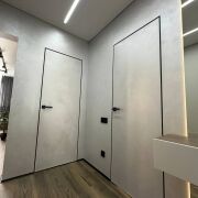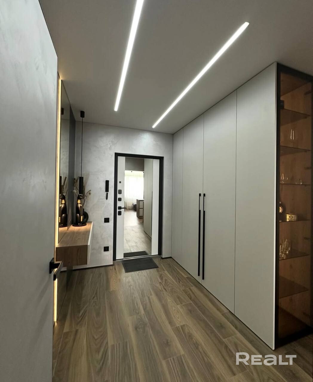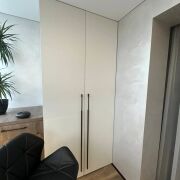 - В прихожей и гостиной встроенные шкафы с глянцевыми фасадами.