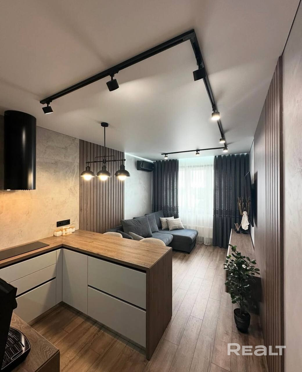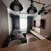 Квартира с дизайнерским ремонтом выполнена в современном стиле с использованием натуральных оттенков и текстур. Световые решения и качественные материалы создают атмосферу уюта и комфорта. Пространство организовано максимально функционально, с акцентом на комфорт и стиль.