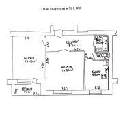 Общая площадь квартиры составляет 48.1 кв.м., из которых 28.3 кв.м. жилая площадь и 6.9 кв.м. кухня.