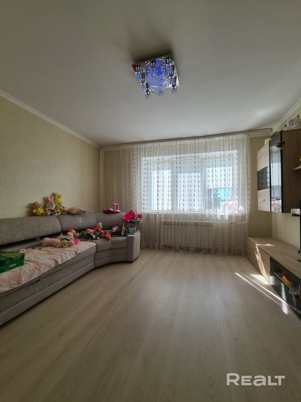 Окна в квартире ПВХ, напольное покрытие - ламинат, в сан.узле - плитка. Входная дверь - металлическая, межкомнатные - стандартные. Имеется лоджия - застеклена.