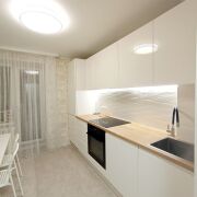 В квартире проведен качественный ремонт: современная плитка в ванной и санузле, гигиенический душ и умывальник в санузле, качественный ламинат в комнатах, натяжные потолки с диодным освещением. Заменена вся электропроводка на медную с УЗО, сделана стяжка пола.