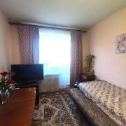 Квартира расположена на 4-м этаже пяти этажного кирпичного дома 1961 г.п. Общая площадь квартиры 55,76 кв.м. Жилая площадь 36,01 кв.м. Кухня 6,02 кв.м. Квартира состоит из трёх изолированных комнат, коридора, небольшой кухни и совмещенного санузла. Есть небольшой балкон. В доме уже прошёл капитальный ремонт. В квартире установлены окна ПВХ, одно из которых выходит на проспект Победы. Остальные окна выходят во двор. Есть интернет, домофон, счётчики на воду. Соседи спокойные. Двор очень зелёный, и в нём Вы всегда найдёте место для парковки автомобиля.