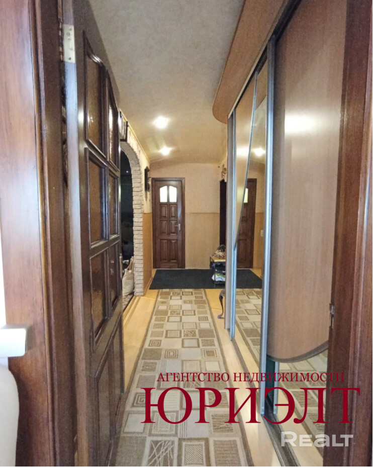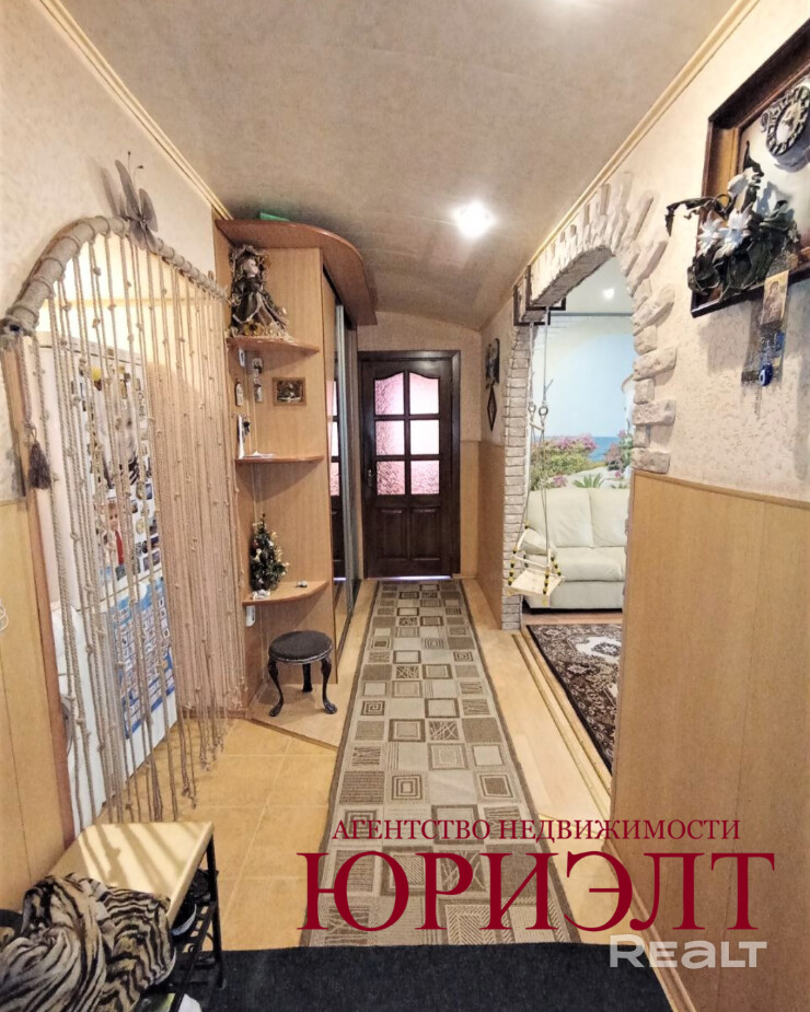 В квартире 3 комнаты, 1 из них проходная. В квартире выполнен косметический ремонт. Стены в комнатах и коридоре оформлены декоративной штукатуркой и окрашены моющейся краской. Везде установлены окна ПВХ, металлическая входная дверь, межкомнатные двери - массив. Натяжные потолки в комнатах. На полу в комнатах уложен ламинат, на кухне, в санузле и частично в коридоре - плитка. Установлен бойлер, счетчики, вся сантехника в аккуратном состоянии. Лоджия утеплена, обшита сайдингом, на полу уложена плитка и установлены рамы ПВХ. В коридоре вместительная ниша, в которой помещаются стиральная машина и холодильник. Тамбур на 3 квартиры, в нем достаточно места для велосипедов, колясок и т.п. Также за квартирой закреплен оборудованный подвал.
