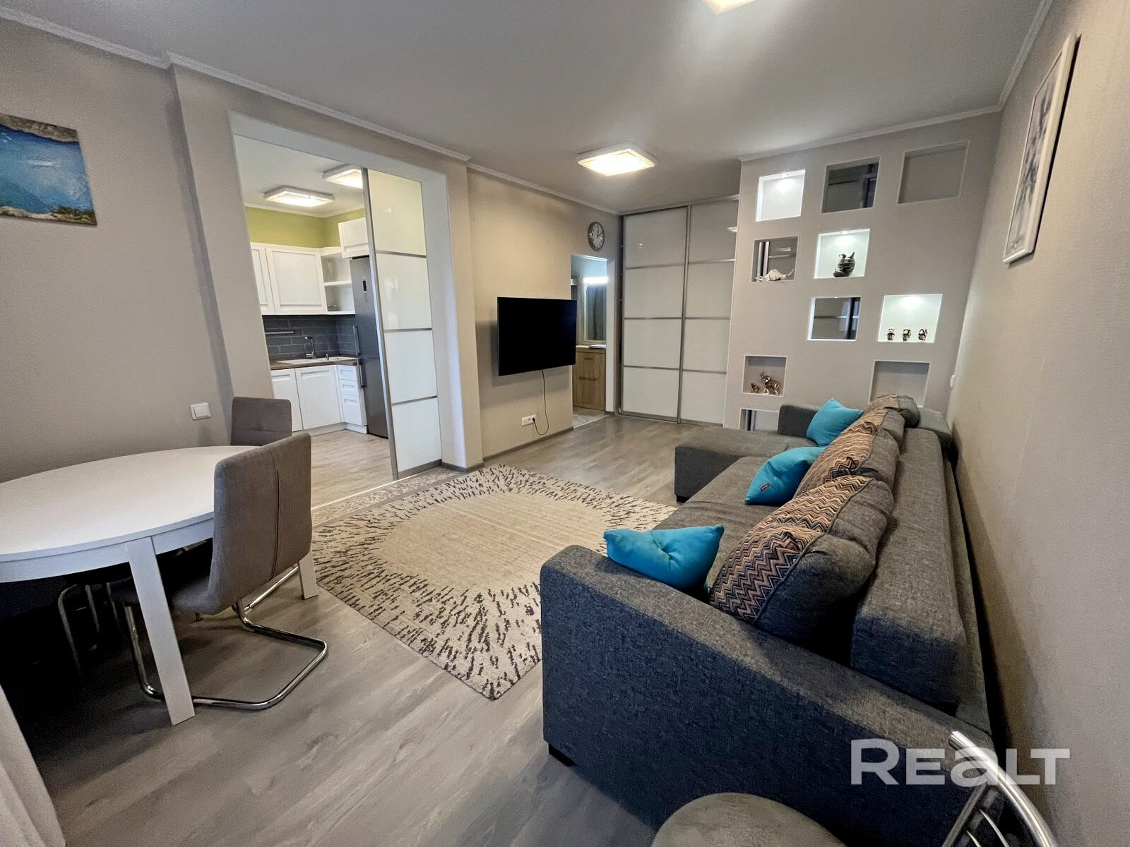 В продаже стильная современная квартира общей площадью 71,4 кв м (СНБ), 8/9 панельного дома 2015 г.п. Советском районе г.Гомеля, 59 микрорайон (Шведская Горка) по ул. Григория Денисенко,16. Зал площадью 22,4 кв м с выходом в кухню площадью 8.3 кв м, 2 спальни-одна площадью 12,3 кв м с оборудованной гардеробной и выходом на лоджию-кабинет и вторая спальня 10 кв м также с выходом на лоджию -кабинет, раздельный санузел, коридор 4,2 кв м с оборудованной прихожей и встроенным шкафом. Есть подсобное помещение для хранения на этаже. Окна деревянный профиль,, балконные рамы ПВХ, межкомнатные двери массив, стены выведены под обои, потолки выведены и окрашены, ламинат в жилых комнатах, коридоре и лоджиях, плитка в санузле , есть гигиенический душ в туалете, входная металлическая дверь. Узаконенная перепланировка. В стоимость квартиры входит вся встроенная мебель, интерьерная мебель , предметы декора и бытовая техника. Прекрасный вид из квартиры на новые дома и реку Сож. Чистый ухоженный подъезд, во дворе достаточно места для парковки. Дом находится в одном из лучших стремительно развивающихся микрорайонов -новостроек с развитой инфраструктурой . Торг возможен после просмотра квартиры, рассмотрим все ценовые предложения и условия оплаты.