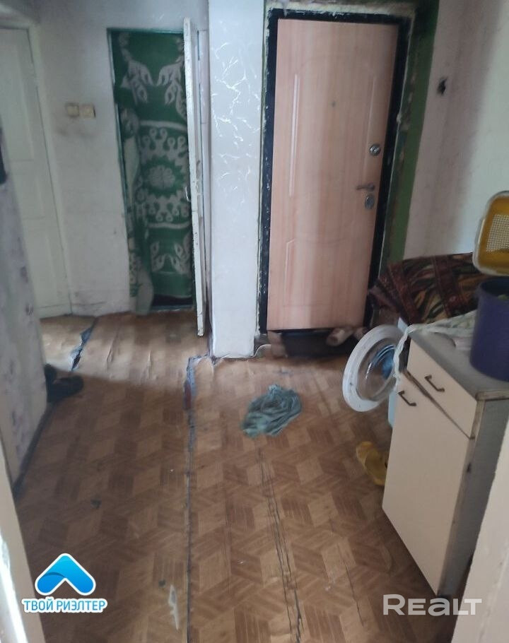 Состояние квартиры жилое, перекрытия ж/бетонные, общая площадь 52,14 м2., три жилых комнаты, санузел раздельный. Все окна ПВХ, на полу ДСП, входные двери металлические, межкомнатные стандартные. Вода центральная - холодная, есть бойлер для горячей воды, канализация центральная. Отопление печное, есть две исправные печи. Газовая плита, газ привозной. Счетчики на воду и свет. Есть интернет. Сарай, погреб и дополнительно земельный участок на 4 сотки. В 2022 году проводился ремонт кровли. Есть магазины, работают маршрутные автобусы, вблизи р.Сож.