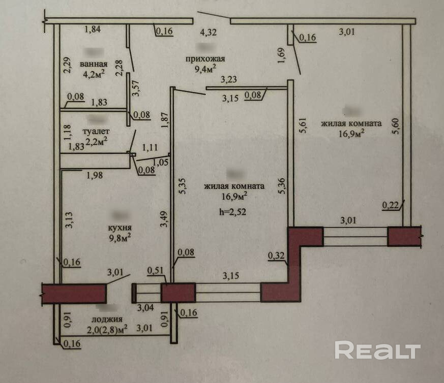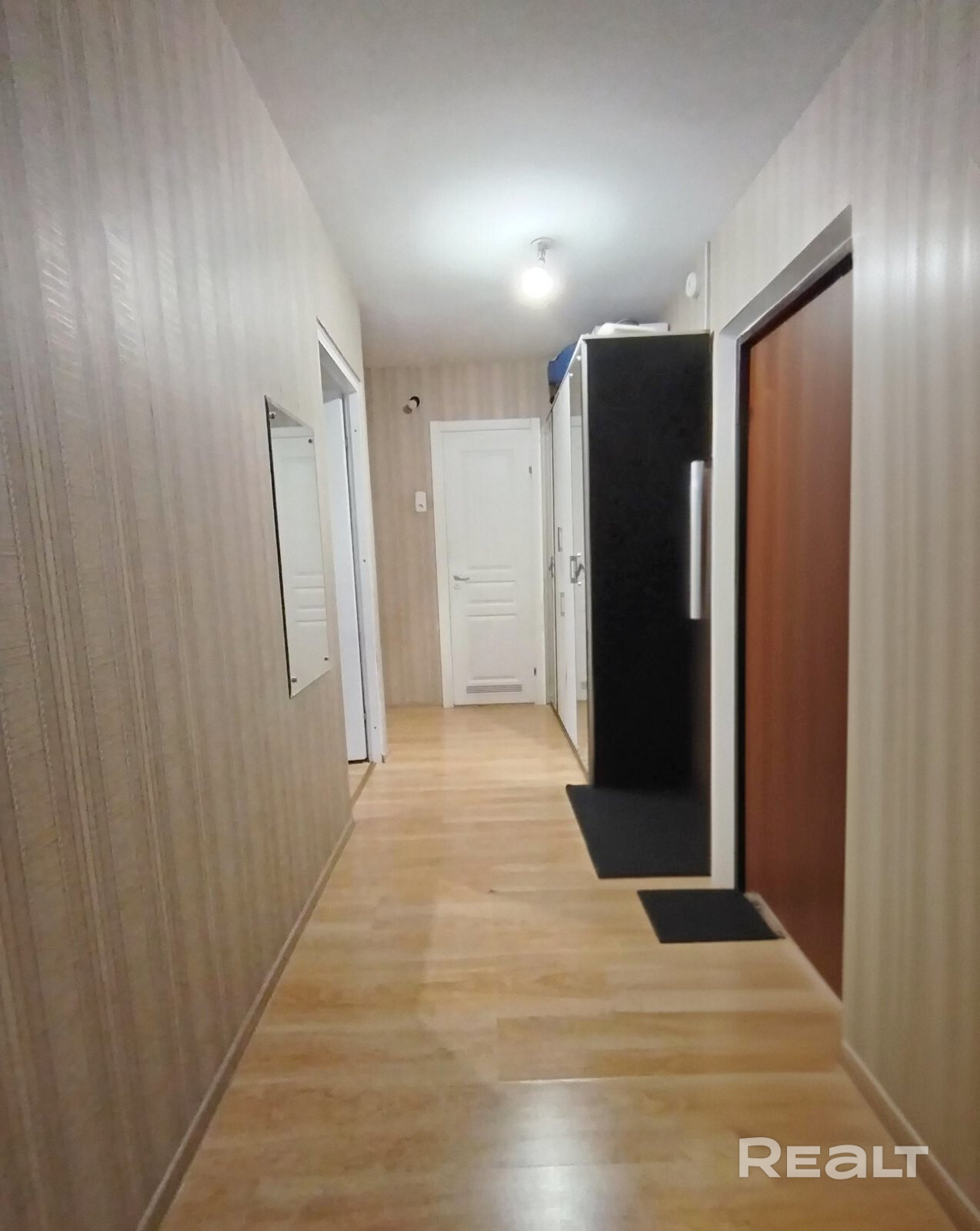 Квартира расположена на 7 этаже. Общая площадь по СНБ составляет 61,4 м2, жилая площадь — 33,8 м2, кухня — 10,0 м2. Планировка удачная: прихожая 9,4 м2, две равнозначные изолированные комнаты, раздельный санузел, застекленная лоджия. Пол ламинат, потолки выравнены, входная дверь металлическая. Чистый подъезд с большим лифтом. Квартира продается без мебели..
