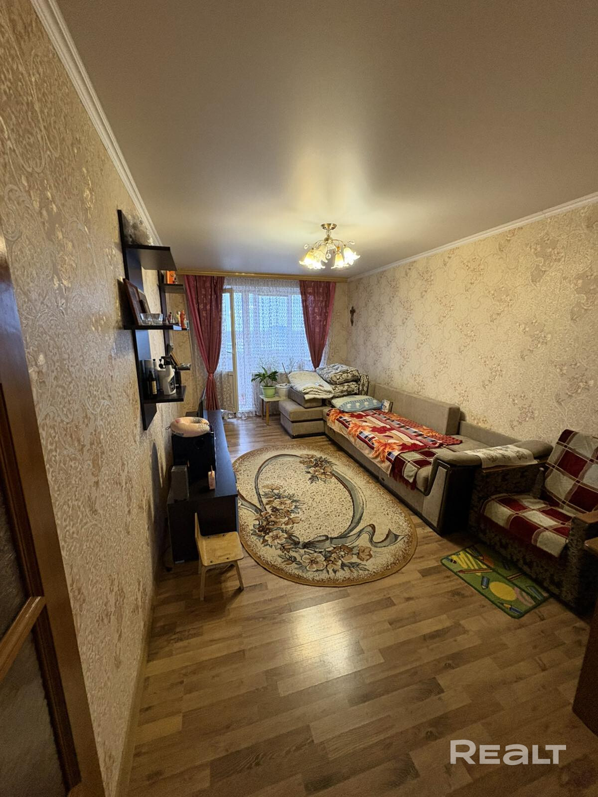 2. В кухне и прихожей уложен практичный кафель (плитка). В двух комнатах — современный ламинат, в одной комнате — линолеум.
