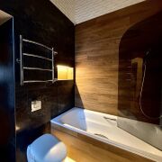 –санузел полностью отремонтирован и перепланирован (заменена вся инженерная система: трубы отопления, водоснабжения, чугунный стояк заменен на ПВХ с клапаном, проводка заменена на медь, установлена панорамная дверь с выходом на балкон, смесители grohe встроенные) заменена ванна, подвесной унитаз, конвектор в пол перед дверью, установлен полотенцесушитель, утеплен пол, сделаны выводы под бойлер; есть второй стояк, который можно использовать для второго санузла с душевой зоной;