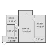 • Общая площадь: 43.91 кв. м.