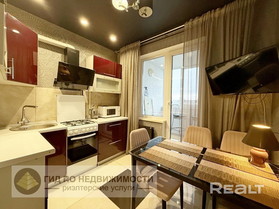 1-комнатная квартира на пр-те Речицком, дом 103, корп.2. Представляем вам прекрасный вариант – 1-комнатную квартиру с современным свежим евроремонтом, которая имеет преимущество расположения в популярном районе города . Эта квартира, расположенная на 9 этаже, есть технический этаж, новый лифт, большой тамбур на три квартиры. Общая площадь 36,5 м2, жилая комната - 19,83м2 с уютной нишей для шкафа-купе и рабочей зоной для компьютерного стола. Кухня площадью 7,5м2 – идеальное место для приготовления любимых блюд. Просторный раздельный санузел отделан плиткой. Батареи в стенах заглушили, вывели чёрные дизайнерские радиаторы Piano Forte с регуляторами наружу, переустройство узаконено. Окна ПВХ. На полу в комнатах ламинат, потолки декорированы подсветкой. Лоджия 4м2 утеплена и обшита декоративным камнем с прекрасным видом из окна.