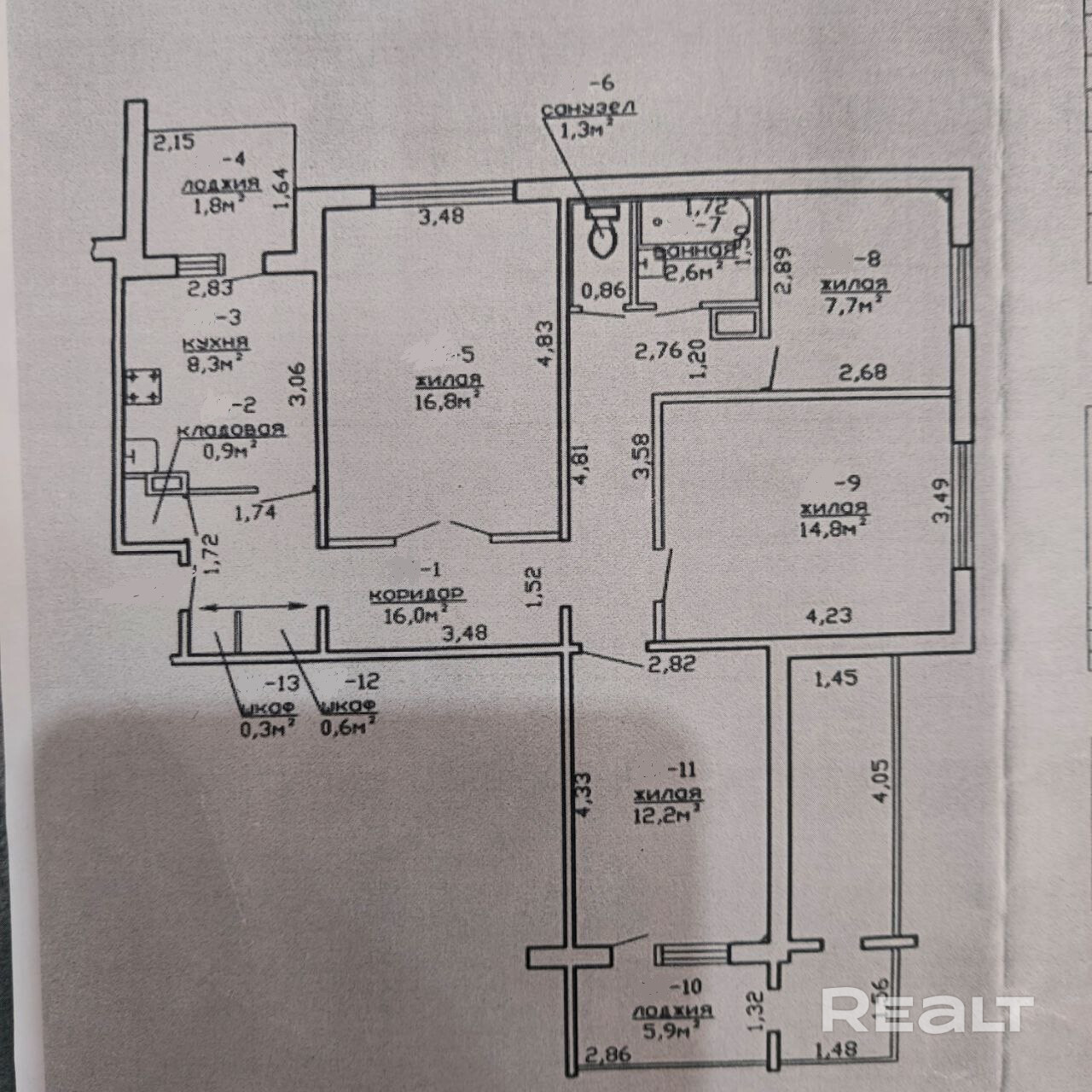 Купить 4-комнатную квартиру, г. Гомель, просп. Речицкий, 87/1
